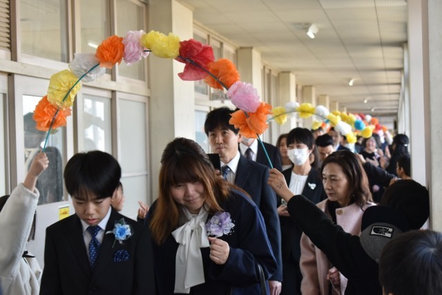 ご卒業おめでとうございます。保護者、来賓、教師、在校生の見守る中、66名の卒業生が旅立っていきました。卒業生や在校生の心のこもった態度や言葉に感動的な卒業式になりました。