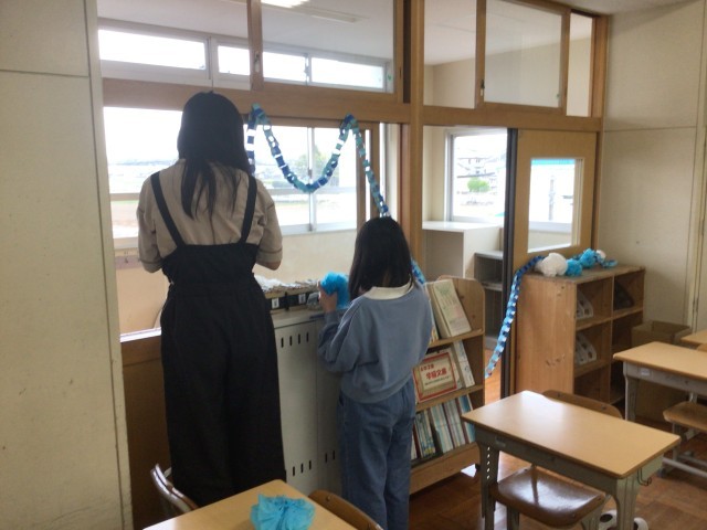 19日に卒業式を終えて、3連休の後の今日、5年生がてきぱきと卒業式会場の片付けと入学式の準備をしてくれました。