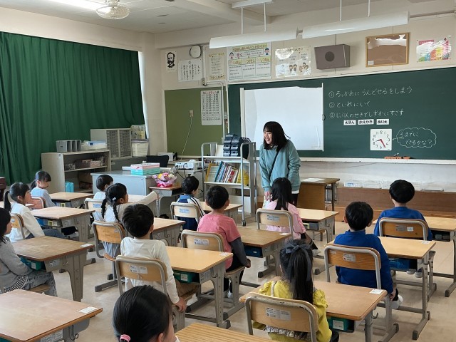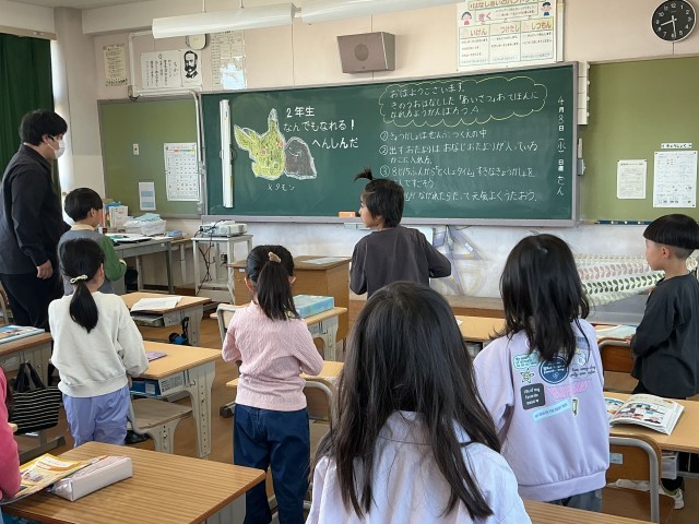 入学、進級して初めての朝の活動です。1年生は静かに塗り絵をしています。2年生以上は朝の歌を歌ったり、先生の話をしっかり聴いて、落ち着いてスタートしています。