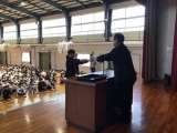 全校朝会の後で、福祉赤十字委員会主催で「うねべの里プロジェクト」が行われました...