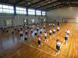 「永田真理子とアンサンブルひまわり」の12名のみなさんが畝部小学校の体育館に来...