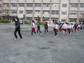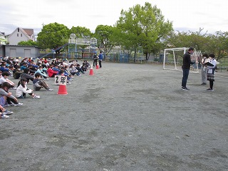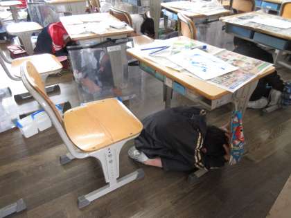 地震後に火災が発生したことを想定して避難訓練をしました。避難の仕方と自分の教室からの避難経路を覚えました。