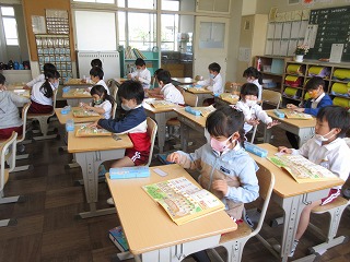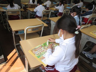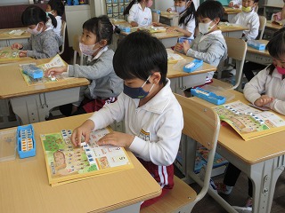 算数科で数の数え方を学習しました。おはじきを置きながら数えました。
