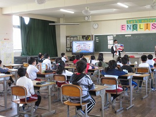 外国語活動で国の名前やあいさつの仕方を学びました。