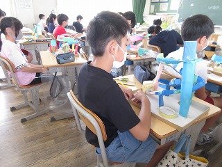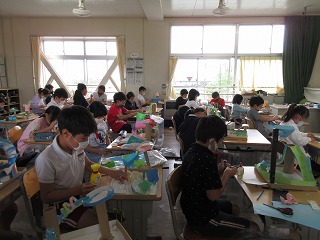 図画工作でビー玉が転がるゲームを作っています。