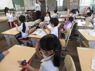 音楽科でカスタネットを使ってリズム遊びをしました。