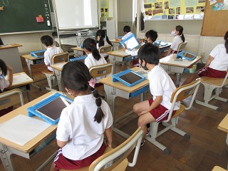 タブレットを使って自分の顔など写真を撮りました。