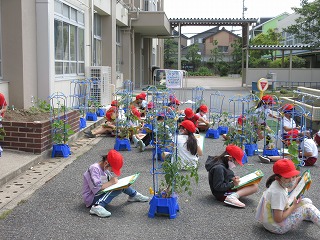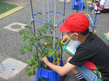 生活科で自分の好きな野菜を育てています。生長の様子を観察しました。