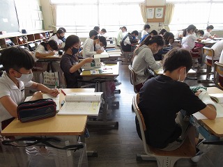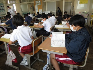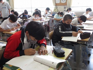 算数科で分数の計算を学習しています。帯分数を仮分数にして計算する仕方を学びました。