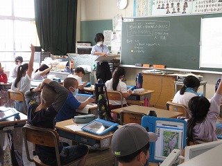 社会科で豊田市の駅周辺と若林駅周辺の様子を比べました。