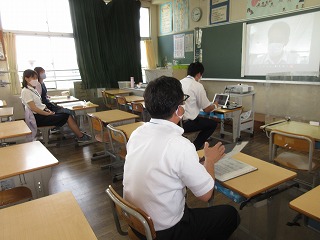指導主事の先生に授業を見ていただき、リモートで学習指導の仕方をご指導していただきました。