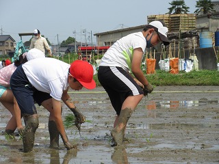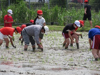 地域の方に教えていただきながら田植えをしました。