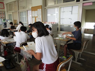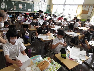 図画工作科で箱からのぞいた世界を描きます。箱を作りました。