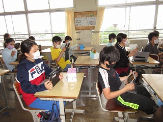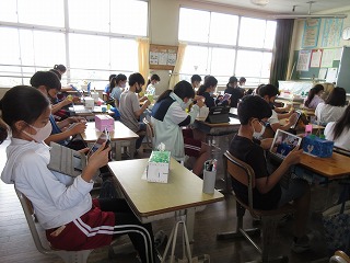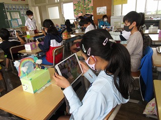 図画工作科でクランクで動く作品が完成しました。自分の作品をタブレットで撮影しました。