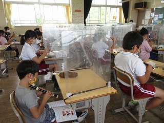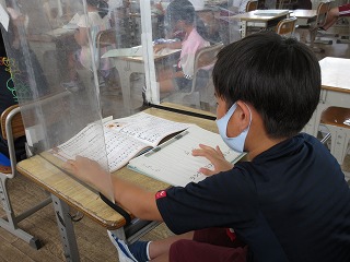 音楽科でリコーダーの運指、シートを使ってオルガンの演奏の仕方を練習しました。