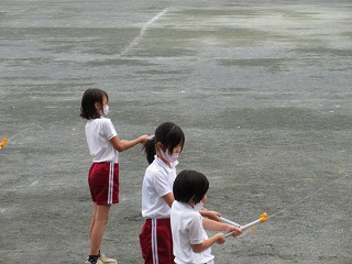 理科の学習で「水と空気」について学習しています。水を押したときの手ごたえ等を調べました。