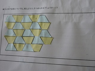 算数科で台形を敷き詰めて形を作りました。
