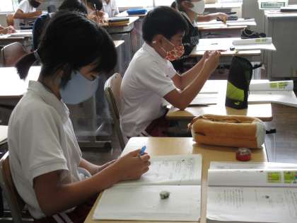 算数科で全体の何倍になっているかを考えて文章題を解きました。