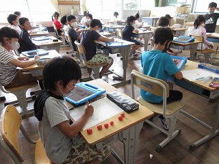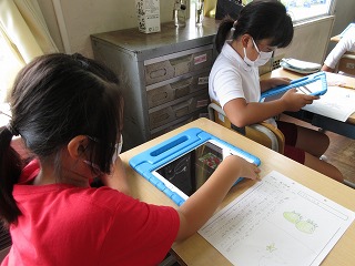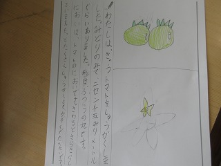 生活科で自分が育てた野菜を収穫しました。収穫した野菜の観察をしました。