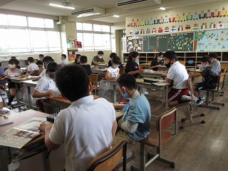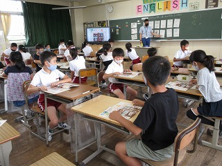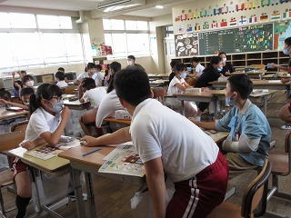 外国語活動で文房具の言い方を学びました。ゲームをしながら覚えました。