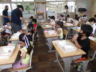 土だんごづくりをしました。四角の形の土粘土から丸い光るだんごを作りました。