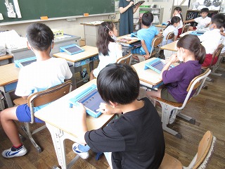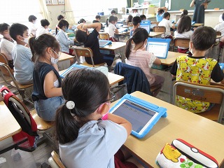 図画工作科で描いた作品を写真撮影し、がんばったことや工夫したことを書いて先生に提出しました。