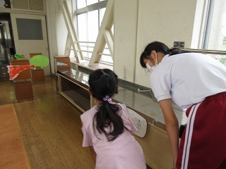 図画工作科の作品を1年生に見せました。