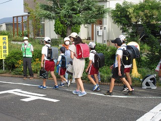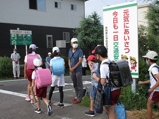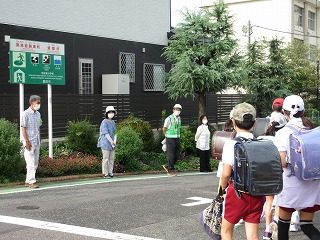 民生委員のみなさん、民生児童委員の方が朝のあいさつ運動をしてくださいました。