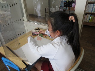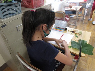 図画工作科でいろいろな葉をこすってみました。