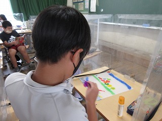 図画工作科で「光のさしこむ絵」を描いています。