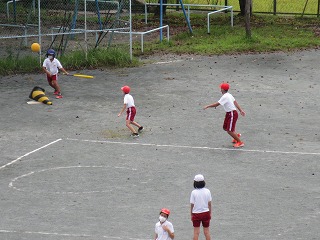 体育科で走り幅跳びをしたり、ティーボールをしたりしました。