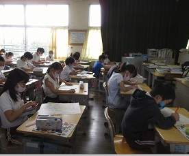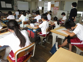 図画工作科で「大きな木」の感想画に取り組んでいます。
