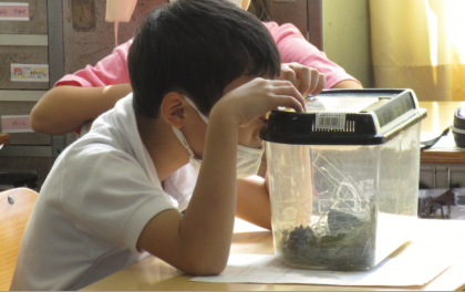 生活科で自分が捕まえた虫のすごいところを発表したり、虫を観察したりしました。