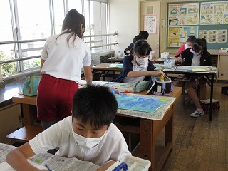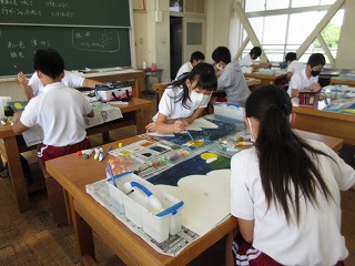 図画工作科で読書感想画を描いています。