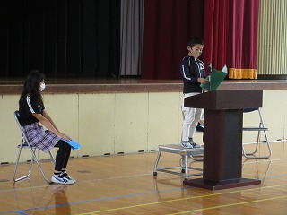 前期後期切り替え式 公開日 2021/10/11 更新日 2021/10/11 学校行事 前期後期の切り替え式をリモートで行いました。2年、4年、6年の児童が前期がんばったことと後期がんばりたいことを発表しました。