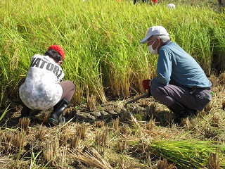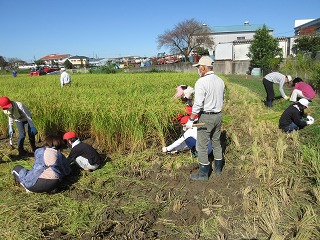 総合的な学習の時間に稲づくりをしています。地域の方と一緒に稲刈りをしました。