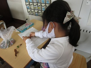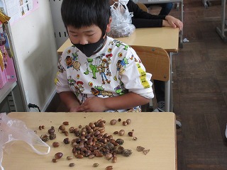 交流館の近くに秋みつけに行きました。いろいろな形のドングリを見つけました。