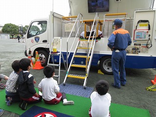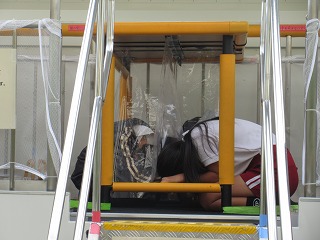 防災学習で地震体験をしました。震度7を体験しました。