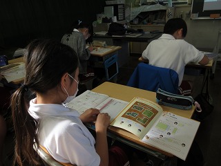 算数科で面積の学習をしています。マス目を数えて面積を求めました。