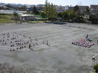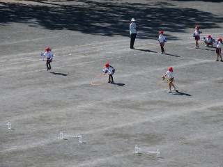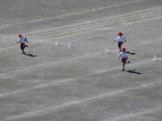 運動会で徒競走と障害物競走の練習をしました。
