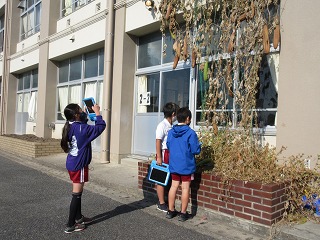 理科で季節と生き物について学習しています。ヘチマの秋の様子をタブレットで記録しました。