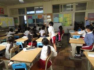 国語科で生き物クイズの学習をしています。問いの作り方を学習しました。