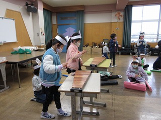 学習発表会で「サラダでげんき」に取り組みます。練習をしています。