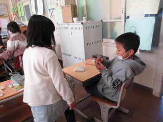 算数科で計算練習をしました。ペアで練習をしました。