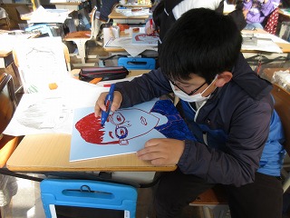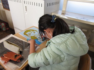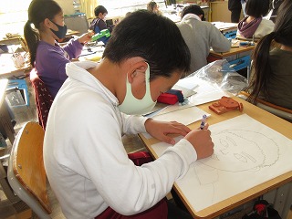 図画工作科で木版画に取り組みます。自分の顔を描きました。