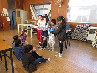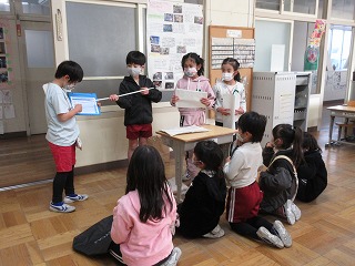 生活科で2年生が虫クイズ、おもちゃまつりをしました。2年生が1年生を招待しました。