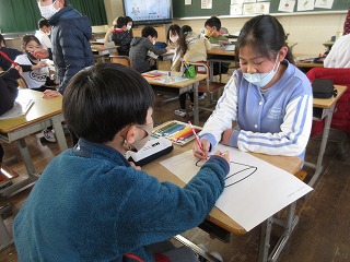 外国語活動で、好きな食べ物を尋ねてオリジナルパフェを作りました。