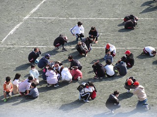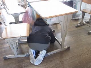 休憩時間の地震が起きたことを想定して避難訓練をしました。