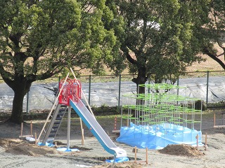 今まで使っていた遊具を撤去し、新しい遊具を設置しています。