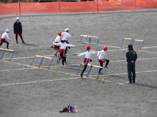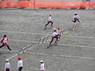 体育科でハードル走をしました。